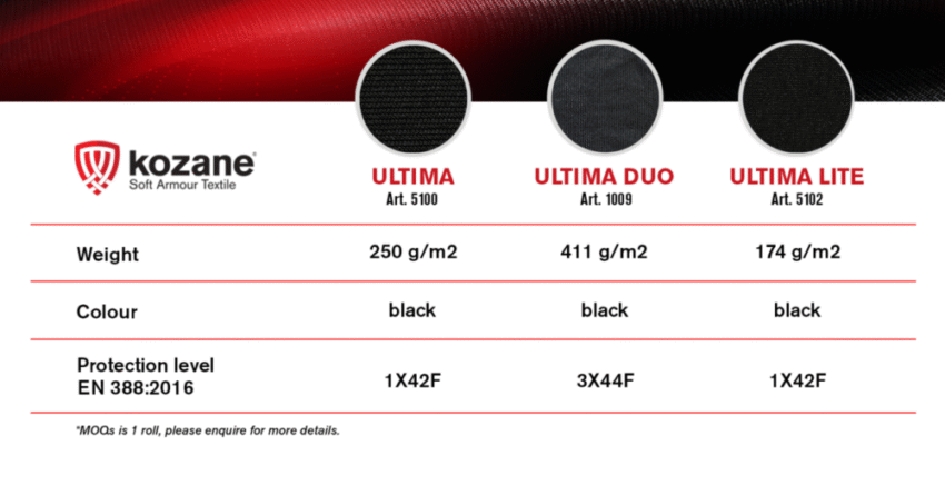 Kozane® Ultima is a revolutionary, new cut-resistant fabric, offering exceptional strength, protection, and top-tier performance, now weighing just 250 grams per square meter. This unique 3D knitted fabric is the world’s lightest A9 cut-resistant material, combining a high-performance top layer with a soft polyester bottom layer for the perfect balance of comfort and protection.